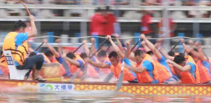 熱血沸騰、緊張刺激、扣人心弦,在沖刺階段,鼓點越發(fā)頻密,選手們劃槳的頻率迅速上升,龍舟的速度越來越快,觀賽區(qū)的加油聲也越來越大,所有人都全身心地投入到這場比賽中。