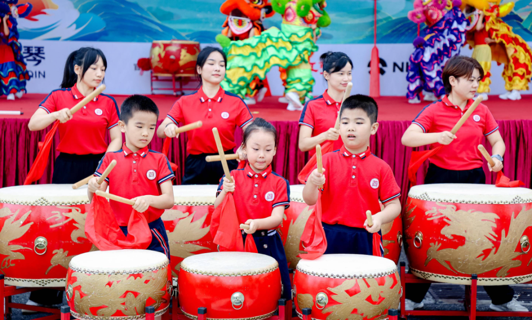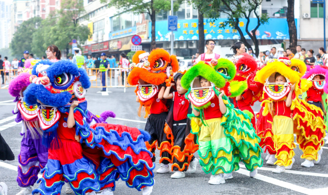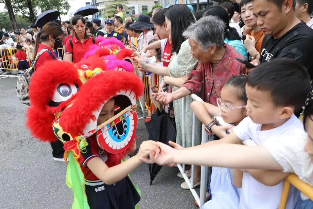 《群獅共舞》《輪滑龍》《賽龍奪錦》《幼兒萌獅》等斗門傳統(tǒng)民俗文化,以及管樂團合奏《迎賓曲》《金龍奪標》、舞蹈《龍騰九洲》、川劇變臉等富有濃厚非遺特色的文體節(jié)目在岸上的舞臺穿插上演。