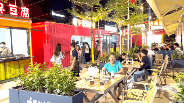現(xiàn)場可以看到街市的攤主們正忙著“開張”做生意,不少剛下班的產(chǎn)業(yè)工人三三兩兩圍坐一起,一邊品嘗美食,一邊暢聊人生,十分愜意。
